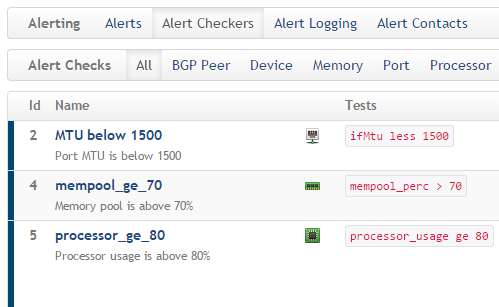 Observium's threshold alerting system allows you to configure thresholds and failure states for a wide range of different entity types. Some types support automatic collection of thresholds from the monitored device itself.